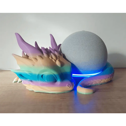 Süsser Drache kompatibel zu Alexa Echo Dot 5 - Vibrant Rainbow - 3D-Druck - 21x9x19 cm