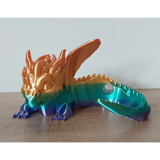 Sanddrache Sandy - 10 cm lang - 14 cm breit - 8,5 cm hoch - 3D-Drucker - Regenbogen pastell schimmernd - niedlich