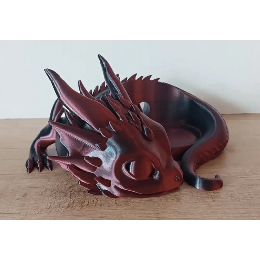 Baby Rose Drache - Dragon - 29 cm lang - 12 cm breit - 6 cm hoch - 3D-Druck -beweglich - Rot/Schwarz Metallic