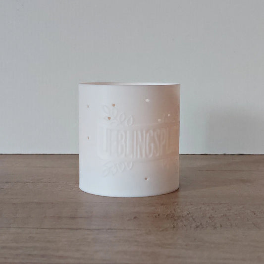 Windlicht „Lieblingsplatz“ aus 3D-Druck | Weiß | Dekoratives Licht für LED-Teelichter | Wohnraumdeko