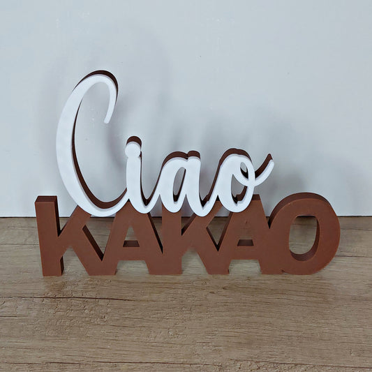 „Ciao Kakao“ Schriftzug aus 3D-Druck | Moderne Deko in Braun & Weiß | Lustige Wohnraumdekoration