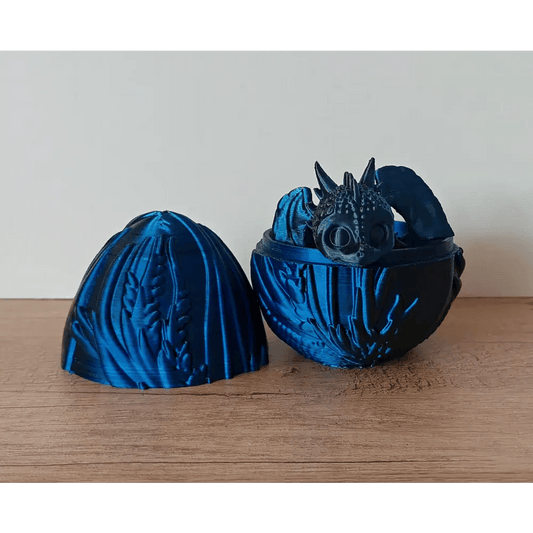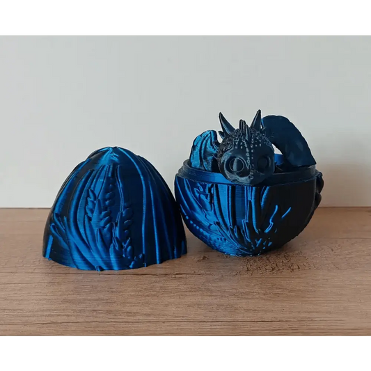 Drachenei - 10 cm hoch - 8,5 cm Durchmesser - mit Ornamenten - blau/schwarz metallic