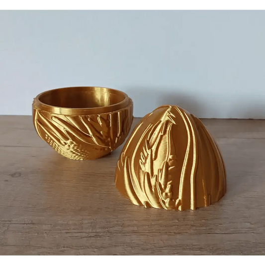 Drachenei - 10 cm hoch - 8,5 cm Durchmesser - mit Ornamenten - gold