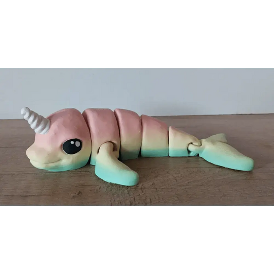 Narwal gross - 20 cm lang - 3D-Druck - voll beweglich - Regenbogen pastell schimmernd