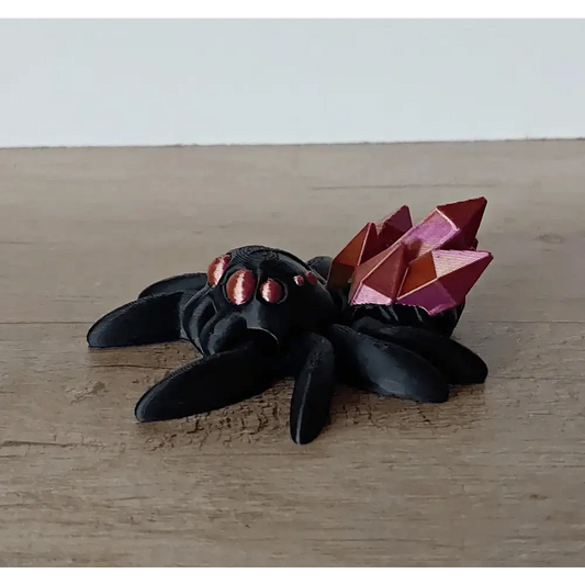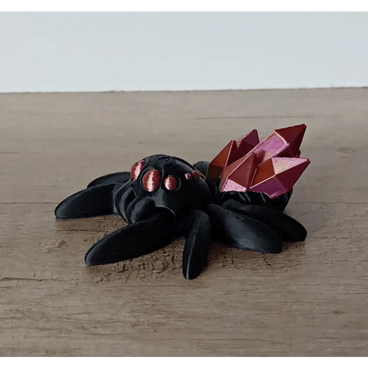 Schwarze Spinne mit rotem Kristallkörper - 9,5 cm lang - aus 3D-Drucker - Crystal Spider