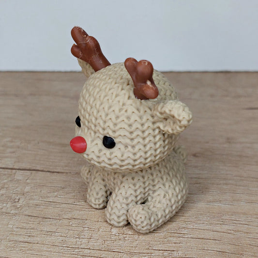 Rentier im Strick-Look aus 3D-Druck | Süße Weihnachtsdeko mit roter Nase | Winter- & Tischdekoration | Rudolph