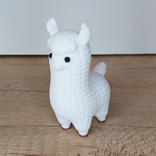 Lama im Strick-Look aus 3D-Druck | Niedliche Dekofigur in Weiß mit braunen Füßen | Skandinavische Wohnraumdeko