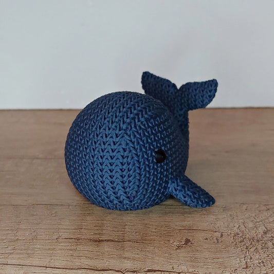 Wal im Strick-Look aus 3D-Druck | Niedliche maritime Dekofigur in Navy-Blau | Geschenk & Wohnaccessoire