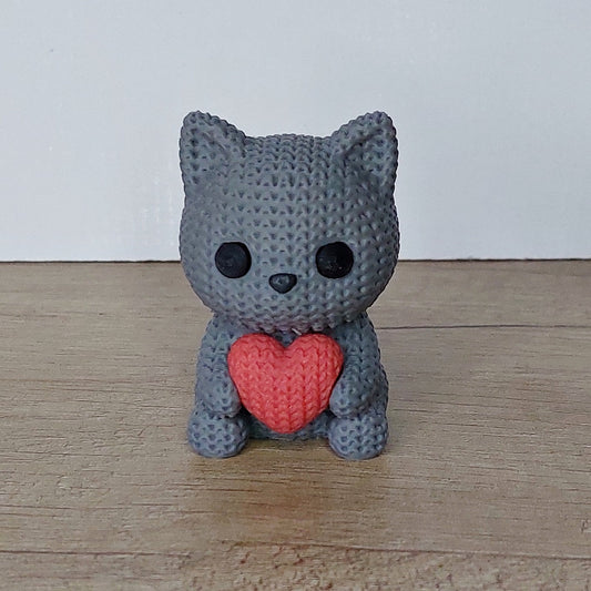 Katze mit Herz im Strick-Look aus 3D-Druck | Niedliche Dekofigur | Geschenk für Katzenliebhaber